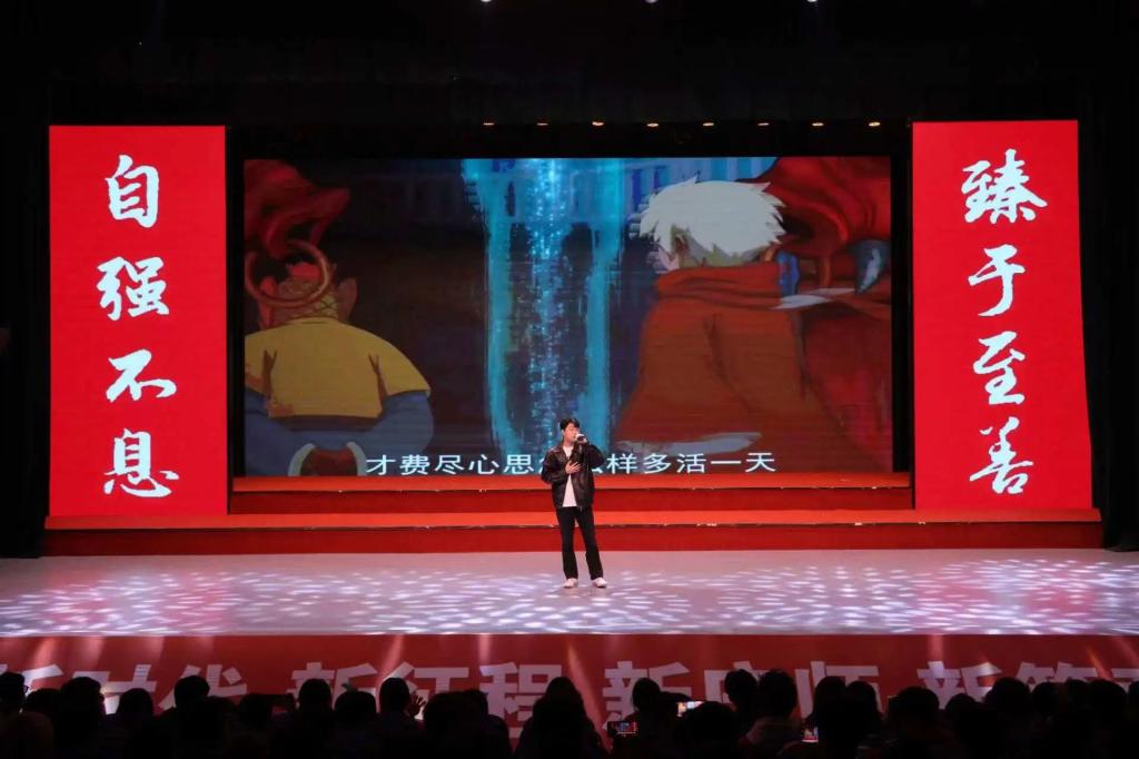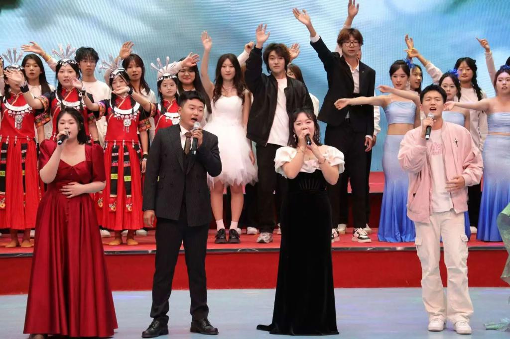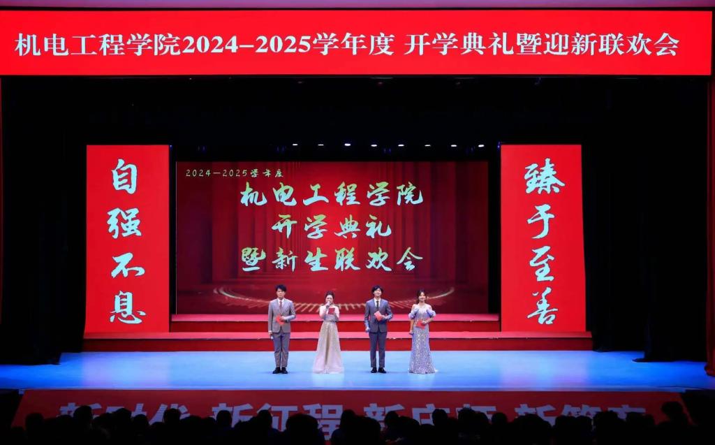 新生入学教育结束后,全院师生共同迎来了一场精彩纷呈的迎新联欢会。绚丽的灯光照亮了舞台,欢快的音乐奏响了青春的旋律。师生们齐聚一堂,共同沉浸在这欢乐的氛围中。