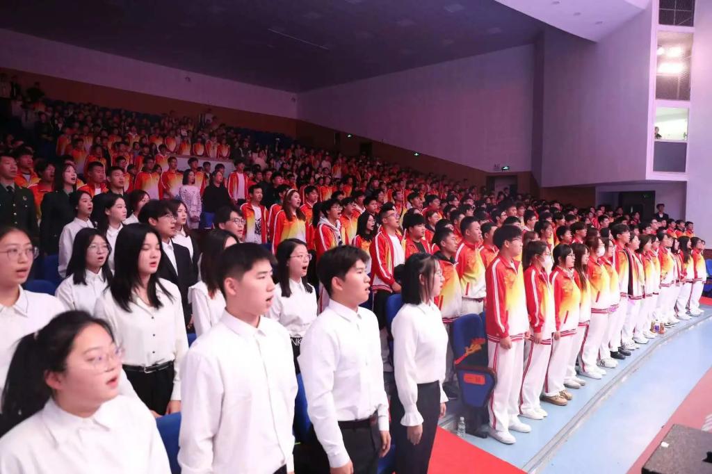 全体起立,奏唱国歌,开学典礼在庄严的国歌声中拉开序幕。