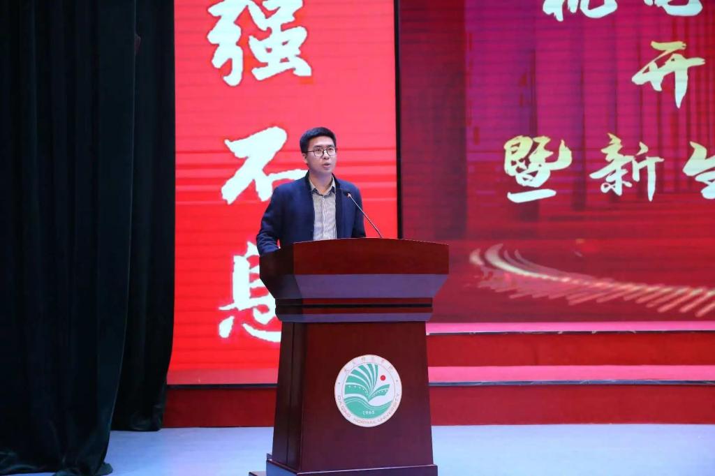 教师代表任艳东发言,他表示要以自身为标杆,传承大庆精神,勇攀科学高峰,坚持“恪守师德,潜心育人”的初心,努力做学生爱戴的好老师。同时,任艳东希望同学们在大学四年的学习生活中,要有规划、有目标、有理想,刻苦学习,不断积累,朝着自己的目标坚持不懈地努力进取。