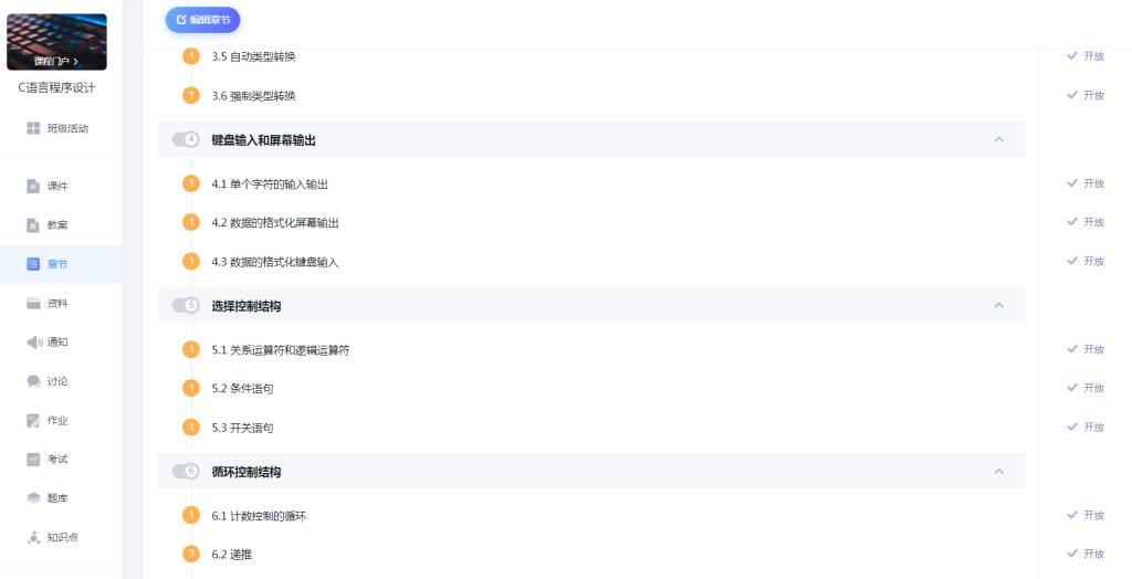 2.学习通在线课程资源丰富。与教材配套的视频、教案、课件等资源齐全,方便学生课后复习巩固。针对C语言课程的特点,需要学生勤于上机练习,平台上为学生提供了2种免费绿化版编译器,并配有教学视频、操作教程,使学生可快速上手练习体验,不必拘泥等待实验课的开放。