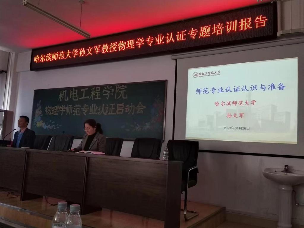 为推动bat365中文官方网站物理学师范专业认证工作顺利开展,提升认证工作质量。2023年4月26日,bat365特邀哈尔滨师范大学孙文军教授于306多功能会议室作题为“师范专业认证认识与准备”专题培训讲座。会议由bat365教学负责人王玉玲教授主持,教务处张国发副处长出席会议、机电学院院长刘永皓教授、机电全体教师、生物工程、体育、化学工程、计算机科学与技术等相关学院的领导和部分教师参会。