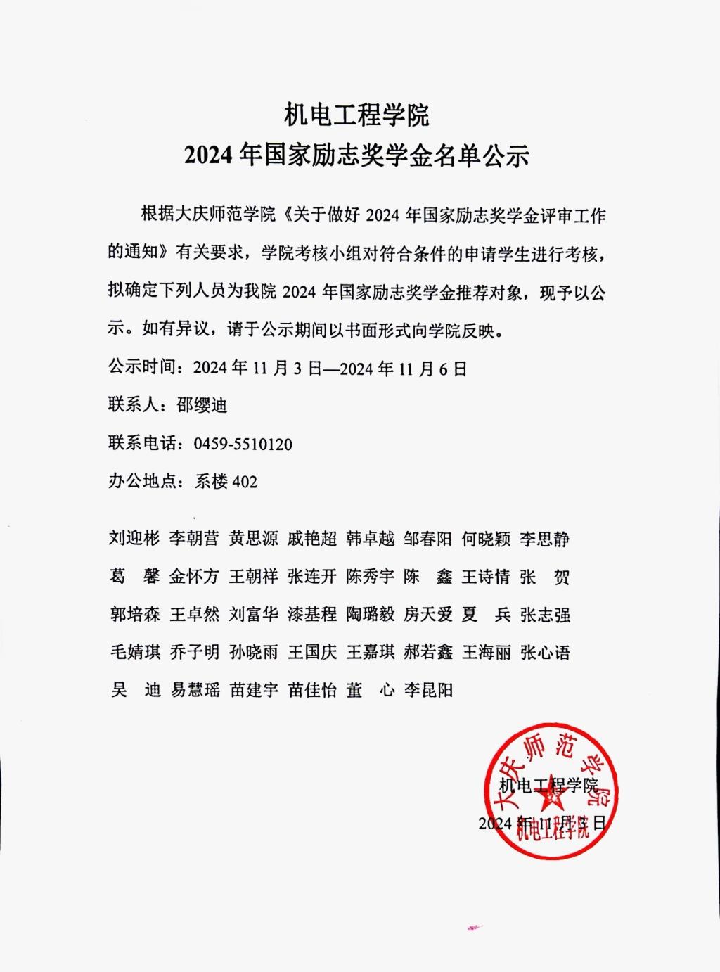 bat365中文官方网站2024年国家励志奖学金公示名单公示