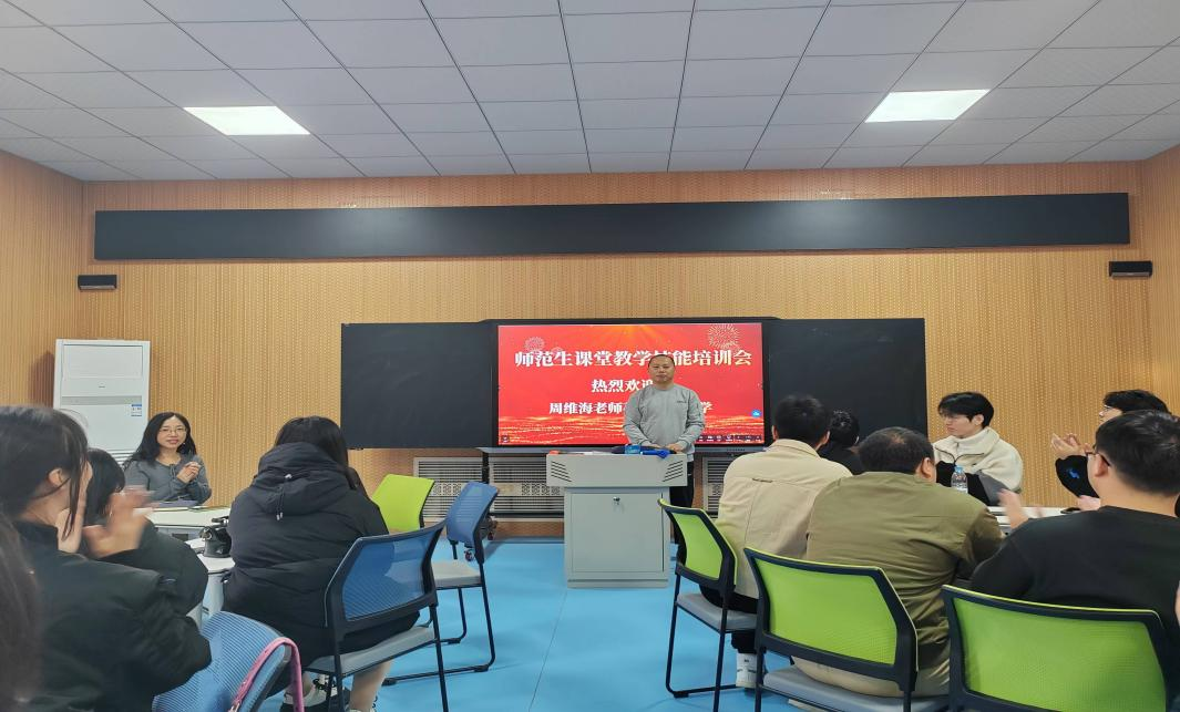 2024年11月15日,bat365中文官方网站物理学专业召开师范生课堂教学技能培训会,会议特邀大庆市物理兼职教研员、高中物理学科专家组成员、大庆市名师工作室负责人、大庆第一中学周维海老师对22级物理学师范生进行课堂教学技能培训,物理学专业全体教师参加会议。