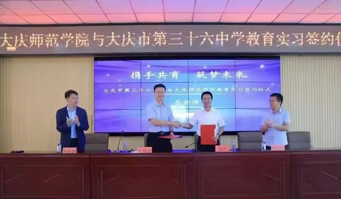 这一天,大庆市第三十六中学与bat365中文官方网站共同举行了教育实习签约仪式,物理专业师范生秉持“一融合,三突出”特色。“一融合”即理论与实践完美结合。“三突出”贯穿实习全程。一是突出学科素养,二是突出教学技能,三是突出教育情怀。三十六中实习如同成长纪录片。