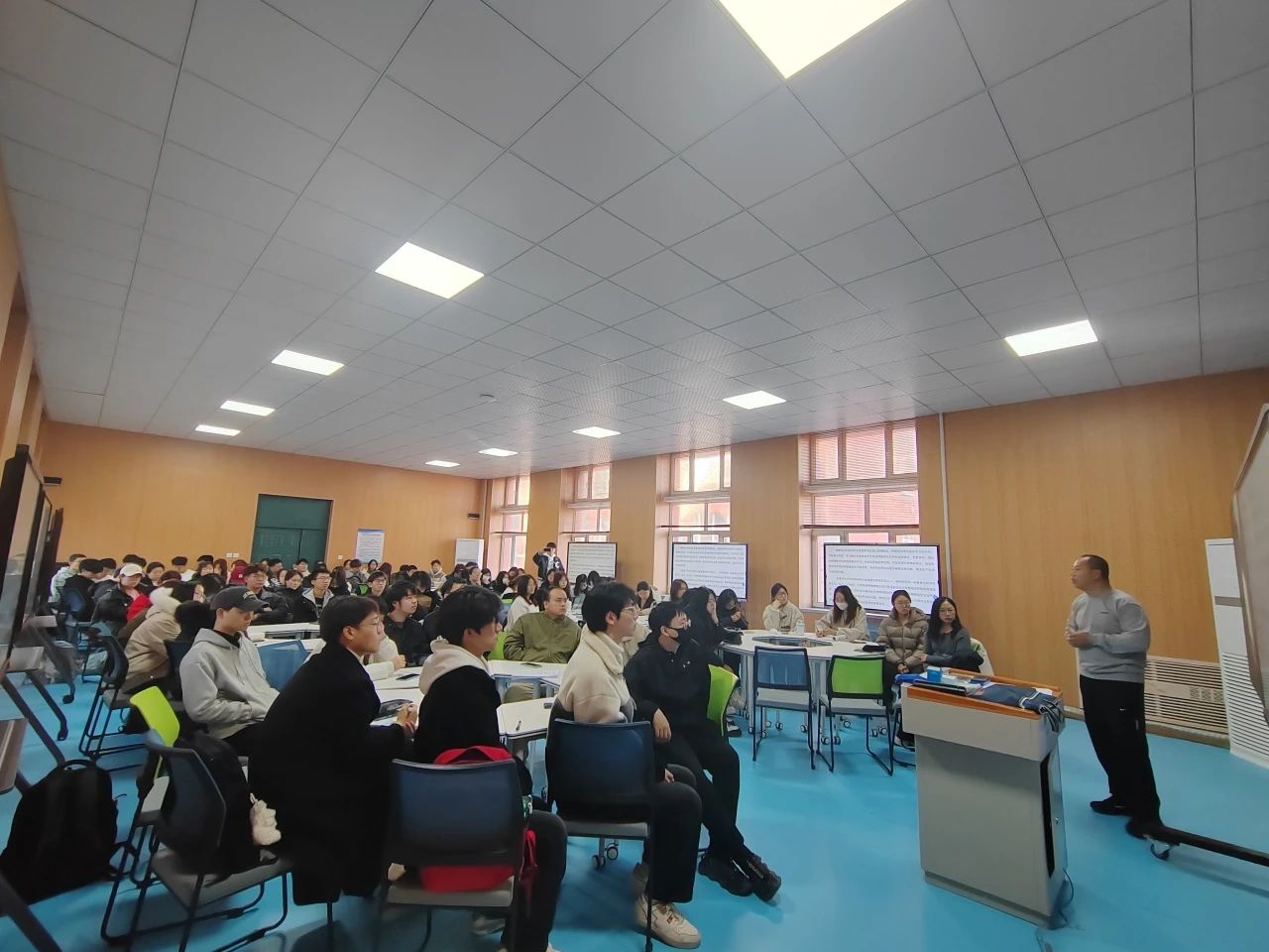会上,周维海老师立足“一核四层四翼”的高考评价体系、针对如何解读新课标、如何理解物理学科核心素养、如何深度挖掘教材、如何设计一节精彩的无生课堂展开分享,周维海老师针对不同课型以真实问题为引领、列举相关优秀案例并逐一解读,精彩的分享与指导为物理学师范生的教学设计开创了新思路、创新的教学方法也得到物理学专业师生的一致好评。